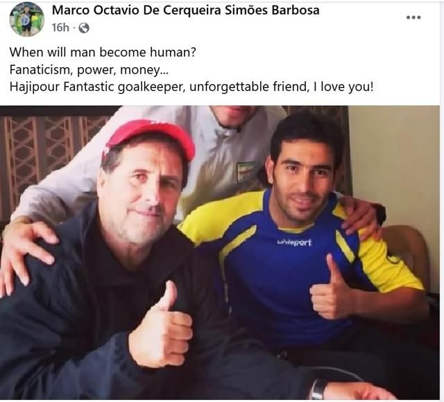اکتاویو با انتشار عکسی مشترک در کنار حاجیپور نوشت: «چه زمانی به انسانیت میرسید؟ تعصب، قدرت، پول... حاجیپور، دروازهبان فوقالعاده، دوست فراموشنشدنی، دوستت دارم!»