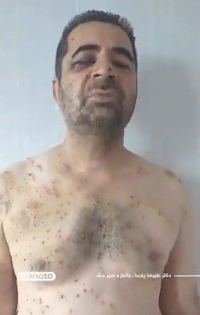 آثار ساچمه بر بدن پزشک جانباز و اسیر جنگ ایران و عراق