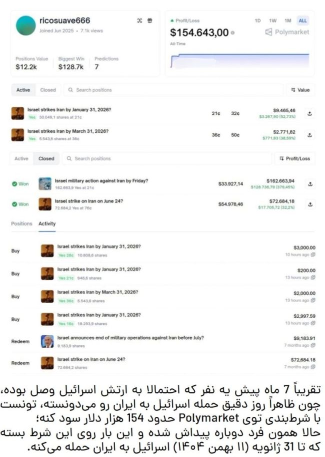اما این کاربر ناشناس نه تنها وقوع جنگ را درست پیشبینی کرد بلکه حتی روز نخستین حمله اسرائیل را هم درست حدس زد و در مجموع ۱۲۸ هزار دلار برد.