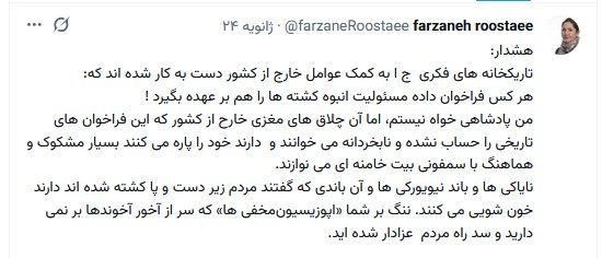 پیام فرزانه روستایی به «چلاق های مغزی» خارج از کشور