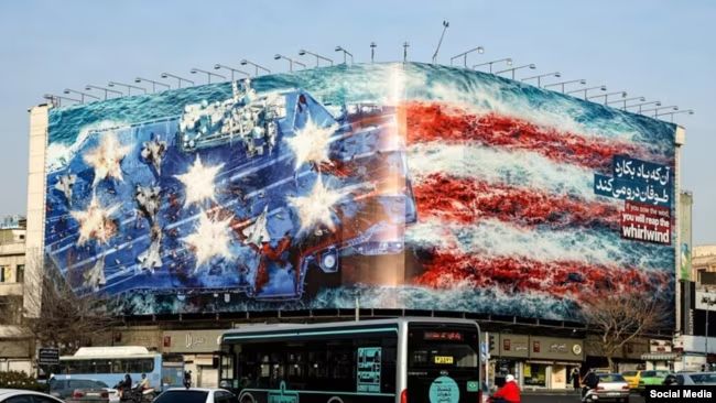 دیوارنگاره تازه میدان ولیعصر تهران، با اشاره به عواقب «هدف قرار دادن» هواپیمابر آمریکادر همین حال، با افزایش گمانهزنیها درباره احتمال فزاینده درگیری نظامی واشینگتن و تهران، تحرکات سیاسی و نظامی در منطقه هم شتابی دوچندان گرفته؛ از ابراز نگرانی کشورهایی همچون امارات متحده عربی که تأکید میکنند اجازه استفاده از حریم هوایی یا دریایی خود برای حمله به ایران را نخواهند داد، تا رایزنیهای کشورهایی همچون قطر، عمان، ترکیه و حتی عربستان سعودی که تلاش میکنند با میانجیگری، مانع درگیری نظامی، که آن را زمینهساز بیثباتی در کل منطقه میدانند، شوند.در این میان، برخی هم همچون رهبر حزبالله لبنان هشدار میدهند که در صورت هدف قرار گرفتن ایران، «بیطرف نخواهند ماند»؛ هرچند مشخص نیست پس از ضربات سنگین اسرائیل، این گروه متحد جمهوری اسلامی چه ابزارهایی برای مقابله با آمریکا و اسرائیل در اختیار داشته باشد.