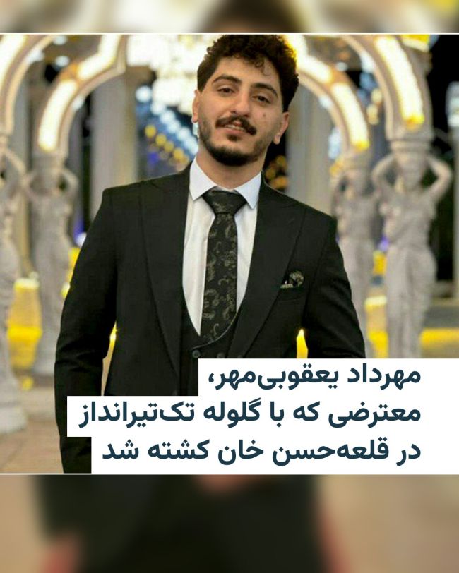 بستگان مهرداد یعقوبیمهر به رادیوفردا گفتهاند که او ۱۸ دی در قلعهحسن خان در شهر قدس - تهران با گلوله تک تیرانداز بر سرش جان باخته است.