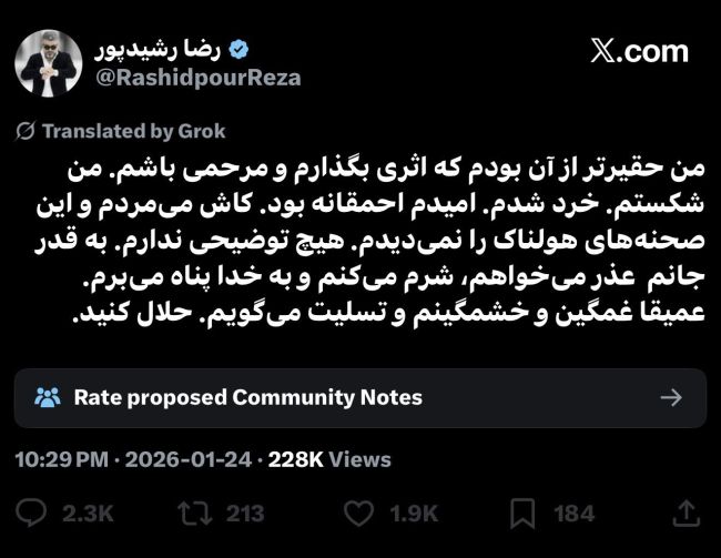 علیرضا قربانی در صفحه اینستاگرام در سوگواره ای نوشت: برای ایران و پارههای تنش…علیرضا قربانی در صفحه اینستاگرام در سوگواره ای نوشت: