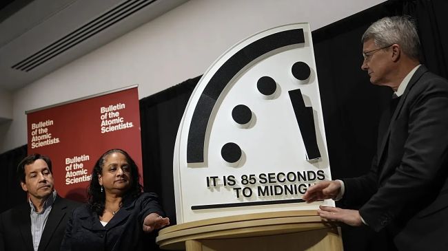 یورونیوز: «ساعت آخرالزمان» که نمادی از میزان نزدیکی بشریت به فاجعه جهانی است، روز سهشنبه به دلیل نگرانیهای فزاینده درباره تسلیحات هستهای، تغییرات اقلیمی و اشاعه اطلاعات گمراهکننده، بیش از هر زمان دیگری به نیمهشب نزدیک شد.«بولتن دانشمندان اتمی» که این ساعت استعارهای را در آغاز جنگ سرد بنیان گذاشت، زمان آن را روی ۸۵ ثانیه به نیمهشب تنظیم کرد؛ یعنی چهار ثانیه نزدیکتر از سال گذشته. دلایل اصلی این تصمیم عبارتند از: