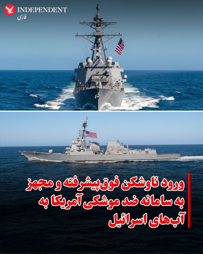 ورود ناوشکن فوق پیشرفته و مجهز به سامانه ضد موشکی آمریکا به آبهای اسرائیل