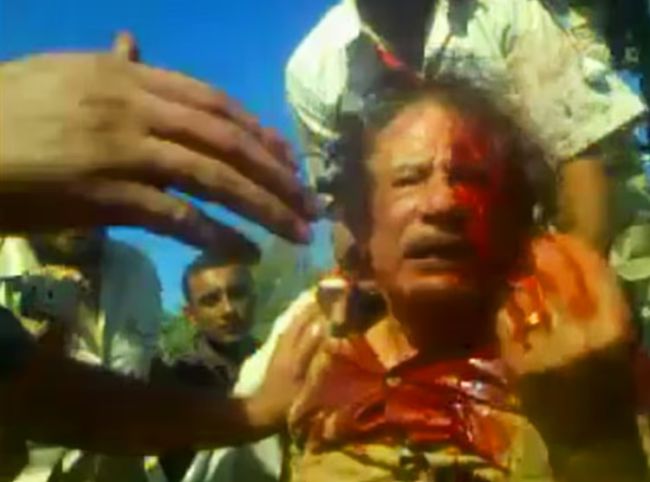 معمر قذافی در شهر سرت لیبی توسط جنگجویان لیبیایی محاصره و دستگیر شدنتیجهگیری نهاییایران به دلیل بوروکراسی ریشهدار، همسرنوشتی نخبگان، وابستگی زیستی کلانشهرها و ناسیونالیسم تدافعی در برابر مداخله خارجی، ساختاری «بیش از حد توسعهیافته» دارد که بخواهد به سبک قبایل لیبی فرو بپاشد.