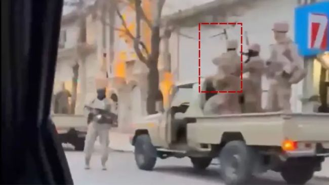 دو اسکرینشات از ویدیوی شلیک تیربار در یزدانشهر، استان اصفهاندر این ویدیو تشخیص اینکه کدام نیروهای نظامی با تیربار شلیک میکنند دشوار است، اما لباس خاکی رنگ نظامی و خودروهای پیکاپ سفید شباهت زیادی به نیروهای زمینی سپاه پاسداران دارد. اما چون آرم نظامی نیروها مشخص نیست، نمیتواند با قطعیت گفت وابسته به کدام نیروی نظامی هستند.در ویدیوی دیگری که مکان آن هنوز مشخص نیست، اما بررسیهای ما نشان میدهد که مربوط به اعتراضات دیماه ۱۴۰۴ ایران است، تعداد زیادی از نیروهایی شبیه به سپاه پاسداران دیده میشوند که با چندین خودرو در یک بلوار در حال حرکت هستند و بر روی یکی از خودروها تیربار بزرگی قرار دارد.
