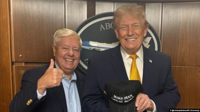 لیندزی گراهام در کنار دونالد ترامپ که کلاهی در دست دارد و روی آن نوشته شده است «ایران را دوباره با عظمت کن»صدای آمریکا: سناتور جمهوریخواه لیندزی گراهام، روز شنبه اعلام کرد که «من مطمئنم که تیم ترامپ مانند دیگران فریب کلاهبرداری [جمهوری اسلامی] ایران را نخواهد خورد.»آقای گراهام این مطلب را در شبکه اجتماعی ایکس، و در واکنش به یک پست مارک لوین مفسر مشهور رادیویی در آمریکا، و ساعاتی پس از ادعای علی لاریجانی، دبیر شورای عالی امنیت ملی جمهوری اسلامی نوشت که بدون نامبردن از دولت آمریکا مدعی شد «برخلاف فضاسازی جنگ رسانهای تصنعی، شکلگیری ساختاری برای مذاکرات در حال پیشرفت است.»