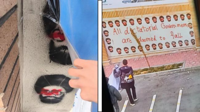 دیوارنویسی در یک مدرسه: همه دیکتاتورها محکوم به سقوط هستند