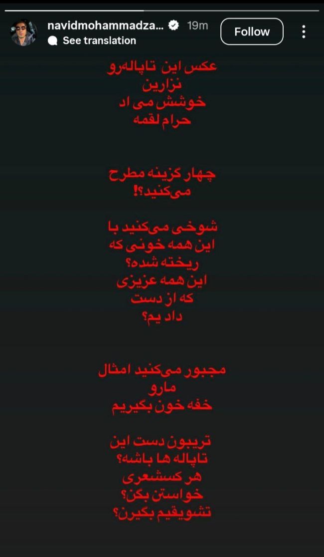آرزو دارم که این هیولا بهزودی داغ عزیزانش را ببیند تا بفهمد که اینگونه با قلب زخمی میلیونها ایرانی بازی نکند.#IranMassacre pic.twitter.com/k6bcmIR3C1