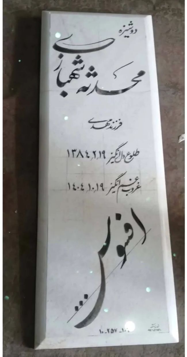 اما خانوادهاش حق ندارند که این زن جوان هنرمند و فعال مدنی را «جاویدنام» بنامند. روی سنگ مزاری که برای محدثه طراحی شده، بزرگ خطاطی شده است: «افسوس.»