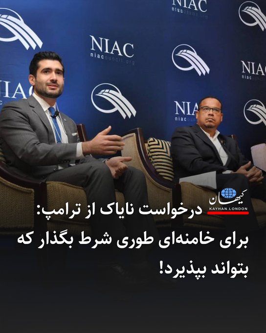 جمال عبدی رئیس فعلی شورای ملی ایرانیان آمریکا ۷ مارس ۲۰۲۵ (۱۷ اسفندماه) با انتشار بیانیهای از ترامپ رئیس جمهور آمریکا تقاضا کرده بود، شروطی برای خامنهای بگذار که او بتواند بپذیرد!