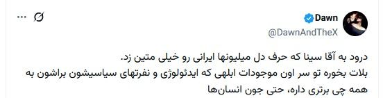 بلات بخوره تو سر اون موجودات ابلهی که ایدئولوژی و نفرتهای سیاسیشون براشون به همه چی برتری داره، حتی جون انسانها @sinavaliollah #IranMassacre pic.twitter.com/2wdH5AqEjf