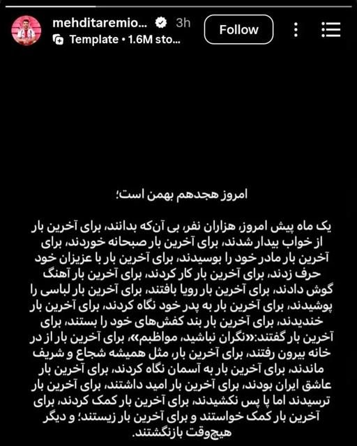 مهدی طارمی، دیگر ملیپوش کشورمان، به یاد این اتفاقات و با گذشت یک ماه از آنها، استوری زیر را به اشتراک گذاشت: