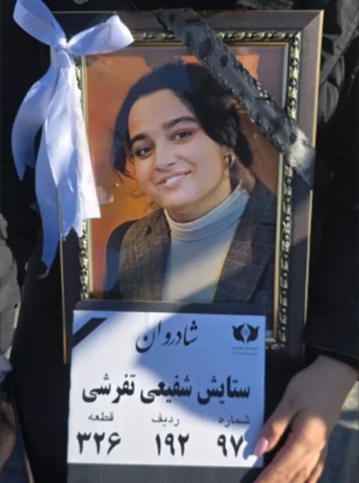«ستایش شفیعی» دختر جوان ۲۰ساله که جمعه ۱۹دی۱۴۰۴ در اعتراضات «تهران» با شلیک گلوله نیروهای مسلح جمهوری اسلامی کشته شد********شامگاه جمعه ۱۹دی۱۴۰۴، دومین شب قطعی اینترنت و ارتباطات، معترضان باز هم در خیابانهای شهرهای مختلف از جمله تهران حضور دارند. سرکوب در جمعهشب ابعاد خشونتبارتری نسبت به شب قبل، پنجشنبه ۱۸دی پیدا کرده است. نیروهای مسلح جمهوری اسلامی از جمله سپاه پاسداران از ابتدای شکلگیری تجمعات اعتراضی، معترضان را هدف گلولههای سلاحهای سنگین قرار دادند و کشتند. ستایش یکی از کشتههای همان شب است.
