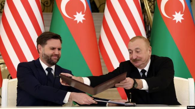 الهام علیاف، رئیسجمهور آذربایجان، این توافق جدید را با جیدی ونس، معاون رئیسجمهور آمریکا، امضا کرد رادیو فردا: ایالات متحده و جمهوری آذربایجان روز سهشنبه ۲۱ بهمن در باکو یک توافقنامه مشارکت راهبردی را امضا کردند که همکاریهای اقتصادی و امنیتی را در بر میگیرد.