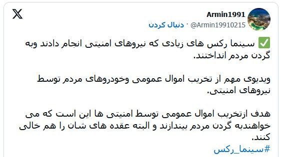 ✅ سینما رکس های زیادی که نیروهای امنیتی انجام دادند وبه گردن مردم انداختند.
