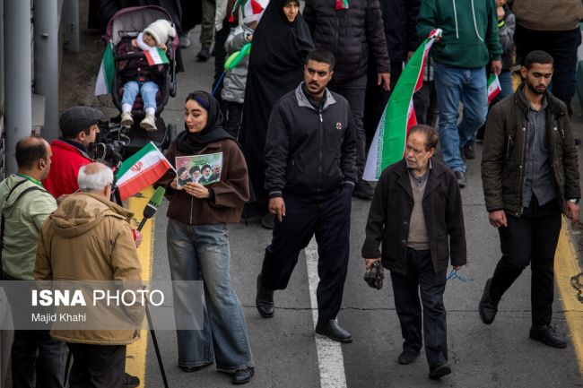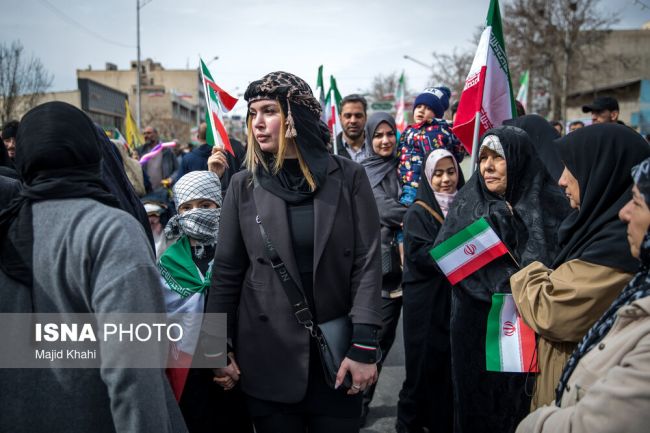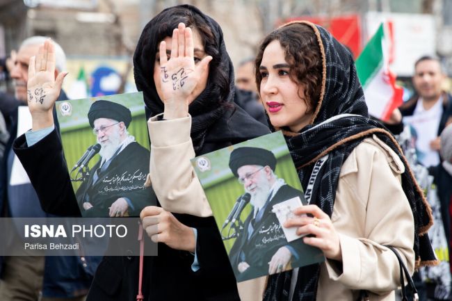 ترفند قدیمی لشکر بیحجابان طرفدار علی خامنهای در 22 بهمن: همه ما معترضیم ولی هیچوقت پشت پدر رو خالی نمی کنیم.اینکه موهام بیرونه دلیل نمیشه وطن فروش باشم، جون میدم برای رهبرم.