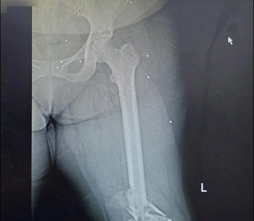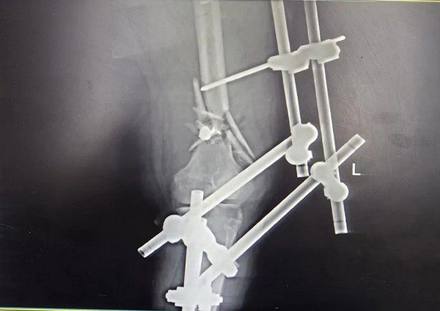 یکی از شدیدترین جراحات متعلق به زنی است که نه تنها کتف، بازو، ران و ناحیه تناسلی او هدف تیر ساچمهای قرار گرفته است، بلکه استخوان ران او نیز با اصابت گلوله جنگی خرد شده است. در تصاویر مشخص است که از فیکساتور برای درمان این مجروح استفاده شده است.