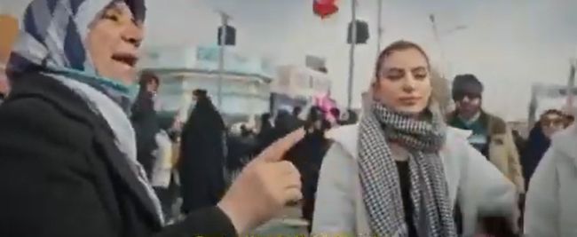 بین علما اختلاف افتاد!!/ اصرار خبرنگار برای گرفتن مصاحبه بدون حجاب و مخالفت شدید یک زن حامی حکومت در راهپیمایی 22 بهمن یک خبرنگار با دختری که شالش روی سرش نبود مصاحبه میکرد و عکس میگرفت که یک خانم دیگه اومد به دختره گفت حجابتو رعایت کن تصویرمون میره تو کشورهای دیگه و بد میشه و با خبرنگار بحثش شد.