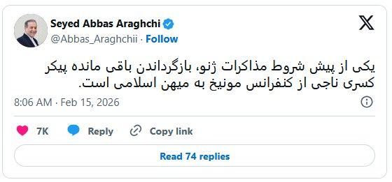 حسابی دارای برچسب پارودی به نام عراقچی، شعار «جاوید شاه» را منتشر کرده است.