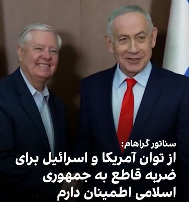 شبکه خبری آی۲۴ اسرائیل گزارش داد، لیندزی گراهام، سناتور جمهوریخواه در اسرائیل گفت: «با اطمینان از توان آمریکا و اسرائیل برای وارد کردن ضربه قاطع به رژیم ایران، اینجا را ترک میکنم.»