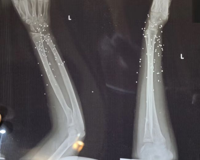 در موارد دیگر، صدها ساچمه در بدن پراکنده شده و بافت نرم را تخریب کردهاند.