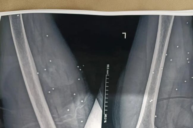 در یکی از تصاویر، نزدیک به ۲۰۰ ساچمه در ران و لگن یک زن میانسال دیده شده است.