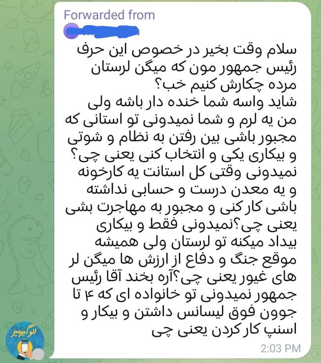 پیام یک هموطن از لرستان در واکنش به خنده و شوخی اعضای دولت به مشکلات حیاتی لُرها