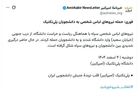 — Amirkabir NewsLetter خبرنامه امیرکبیر (@autnews_org) February 23, 2026