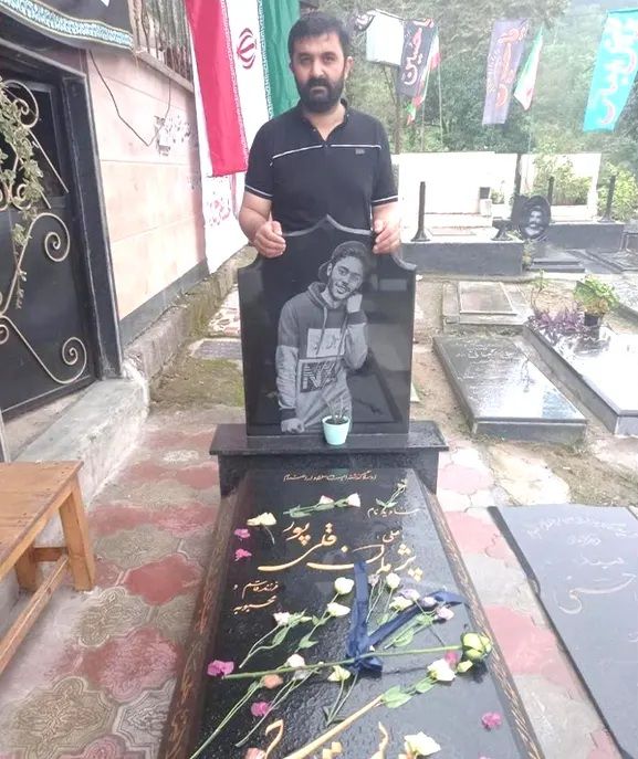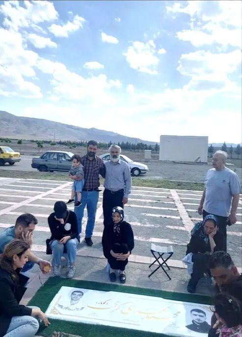 علیرضا کنار ماشاالله کرمی بر مزار محمدمهدی کرمی. محمدمهدی کرمی در اعتراضات ۱۴۰۱ بازداشت و اعدام شد. قوه قضاییه ادعا کرد او در قتل یک بسیجی نقش داشته است؛ ادعایی که از سوی خانوادهاش رد شد