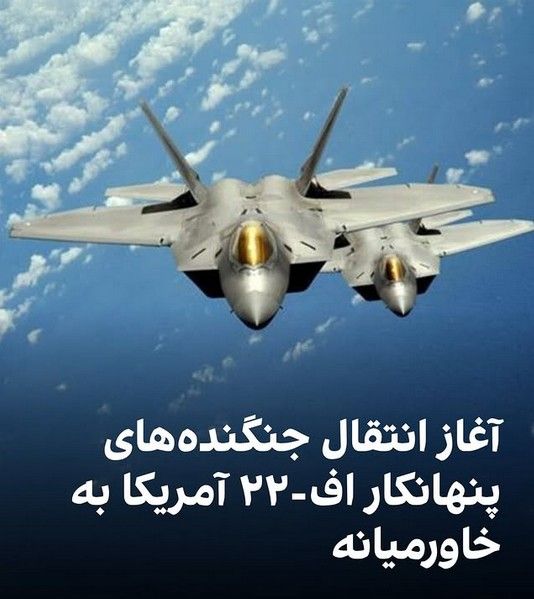 رسانههای اسرائیلی پنجم اسفند گزارش دادند ارتش آمریکا روند انتقال ۱۲ جنگنده رادارگریز اف-۲۲ به خاورمیانه را آغاز کرده است. این جنگندهها پیشتر در یک پایگاه هوایی در بریتانیا مستقر بودند.