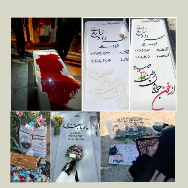 همچنین درج اشعار، جملات یا عباراتی که مفاهیمی چون مبارزه، رشادت، آزادی یا میهندوستی را تداعی کند، با هشدار مسئولان آرامستانها و در برخی موارد با تهدید به برخورد امنیتی و تخریب سنگ قبر مواجه شده است. شواهد میدانی از شهرهای مختلف نشان میدهد این محدودیتها بهصورت گسترده و نظاممند اعمال شده و هدف آن حذف نشانههای ارتباط مرگ آنان با دستگاه سرکوب و کشتار حکومت است.
