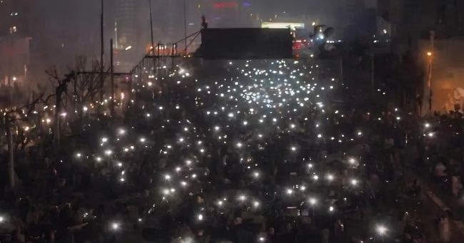 عکسی از معترضان با چراغهای روشن موبایل در زمان خاموشی گسترده منطقه پونک تهران کمی پیش از مرگبارترین سرکوب تاریخ معاصر ایران