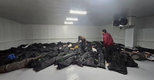 اجساد رها شده معترضان در گوشهای از پزشک قانونی کهریزک در کیسههای مخصوص حمل جسد متعلق به سازمان بهشت زهرای تهران
