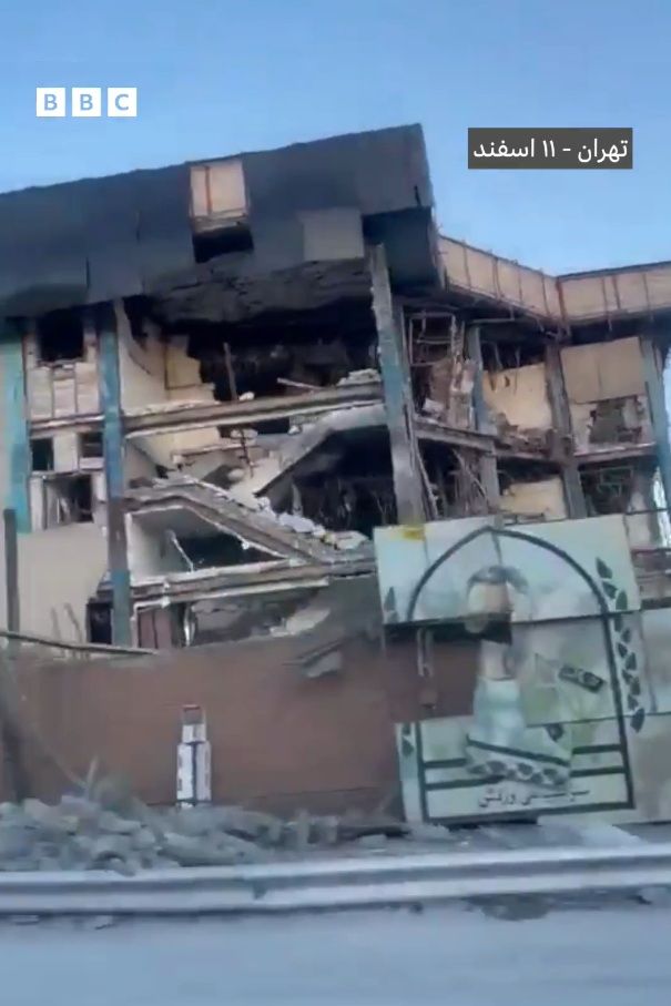 ویدیو نشان میدهد که ساختمانهای ستاد در پی حملات اسرائیل و آمریکا تخریب شدهاند.