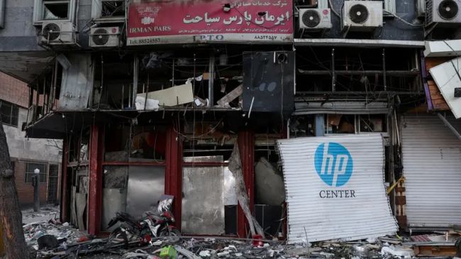 بقایای ساختمان دبیرخانه مجمع تشخیص مصلحت نظام پس از حمله هوایی