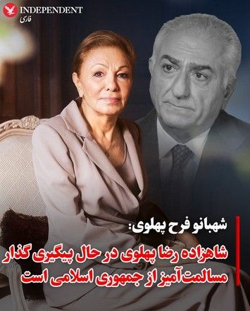 شهبانو فرح پهلوی: شاهزاده رضا پهلوی در حال پیگیری گذار مسالمتآمیز از جمهوری اسلامی است