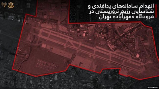 انهدام سامانههای پدافندی فرودگاه مهرآباد. گرافیک از ارتش دفاعی اسرائیلارتش اسرائیل روز چهارشنبه ۱۳ اسفند با انتشار اطلاعیهای اعلام کرد نیروی هوایی این کشور در «دهمین موج حملات» خود به مواضع جمهوری اسلامی در خاک ایران، سامانههای پدافندی و شناسایی وابسته به جمهوری اسلامی را در فرودگاه مهرآباد تهران هدف قرار داده است.در این بیانیه، آمده است که این سامانههای «رژیم تروریستی» جمهوری اسلامی تهدیدی مستقیم علیه جنگندههای نیروی هوایی اسرائیل به شمار میآمدهاند.
