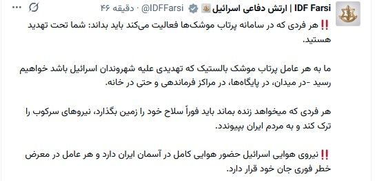 — ارتش دفاعی اسرائیل | IDF Farsi (@IDFFarsi) March 7, 2026