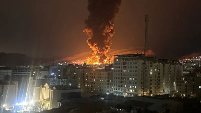 تصاویری از حمله هوایی شبانه به انبارهای نفت در تهران در شبکههای اجتماعی منتشر شده است. در این تصاویر ستونهای عظیم آتش و دود پس از حملات گسترده به این تاسیسات دیده میشود.