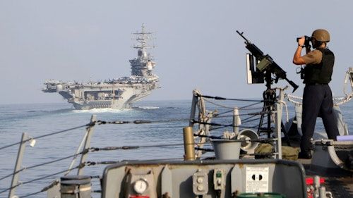 نیروهای آمریکایی در نزدیکی خلیج فارس، ۲۰۲۳سپاه پاسداران ایران روز سهشنبه اعلام کرد که در صورت ادامه حملات آمریکا و اسرائیل، اجازه ارسال حتی «یک لیتر نفت» از خاورمیانه را نخواهد داد. این اظهارات، هشدار دونالد ترامپ، رئیسجمهوری آمریکا را در پی داشت که تهدید کرد اگر ایران صادرات از این منطقه حیاتی تولیدکننده انرژی را مسدود کند، آمریکا ضربه بسیار سختتری و به گفته خود او «۲۰ برابر بیشتر»به ایران وارد خواهد کرد.آقای ترامپ افزود: «[در این صورت] ما به آسانی به اهدافی حمله میکنیم که عملا بازسازی ایران را غیرممکن خواهند ساخت. مرگ، آتش و خشم گریبانگیر آنها خواهد شد. اما امیدوارم و دعا میکنم که این اتفاق نیفتد.»