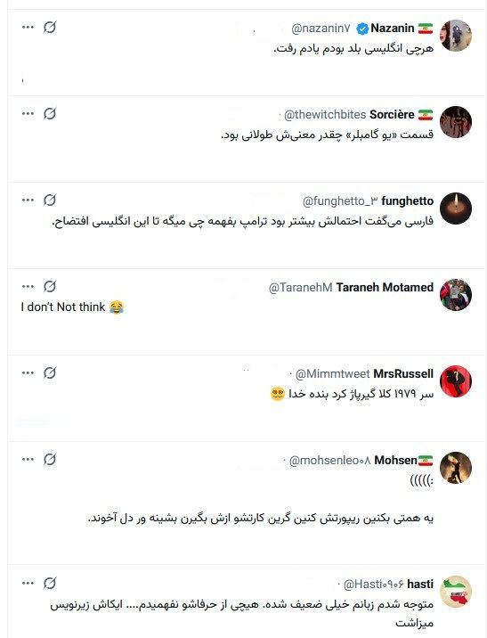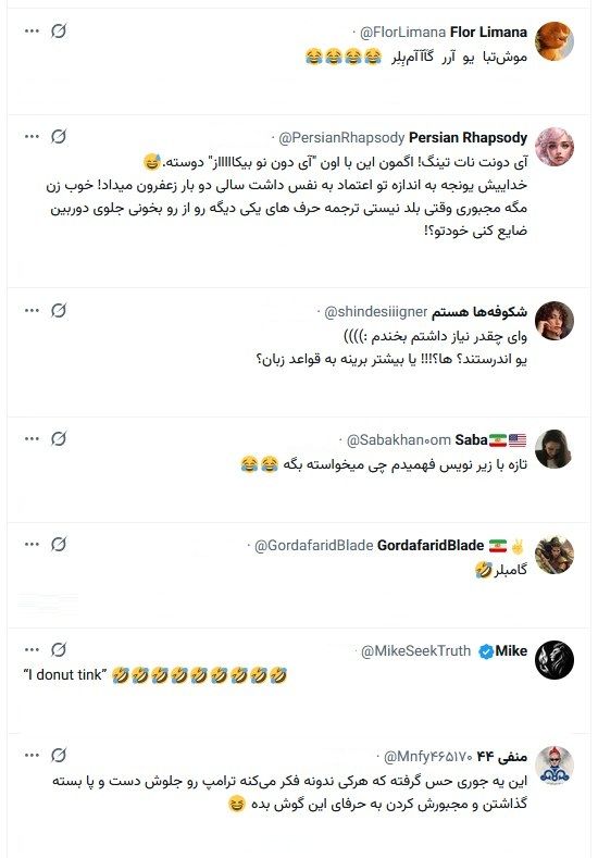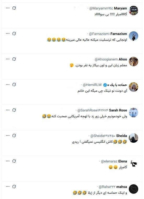 کاربران توئیتر نیز با تعجب از سطح انگلیسی و اعتماد به نفس بالای وی با این سطح پیامهای متفاوتی را در زیر این پست نوشتند.