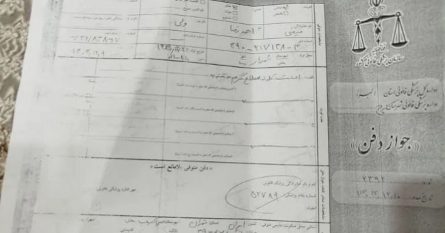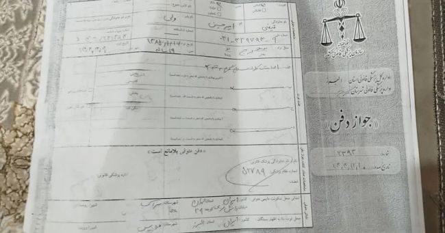 جواز دفن امیرحسین. علت فوت او اصابت گلوله گرم به تنه عنوان شده استشب نهم اسفند، امیرحسین و احمدرضا با پدرشان و چند تن از دوستانشان استخر بودند که خبر کشته شدن علی خامنهای تایید و منتشر میشود. امیرحسین به پدرشان میگوید «بابا بریم فردیس شلوغ شده است». پدرش میگوید «ولش کنن بابا بعدا میرویم بیرون». امیرحسین خیلی اصرار میکند و در نهایت امیرحسین و احمدرضا و پدرشان و دو دوست پدرش سوار خودروی ولی فیضی میشوند و برای پیوستن به شهروندانی که خبر مرگ علی خامنهای را جشن گرفته بودند، به خیابان میروند.