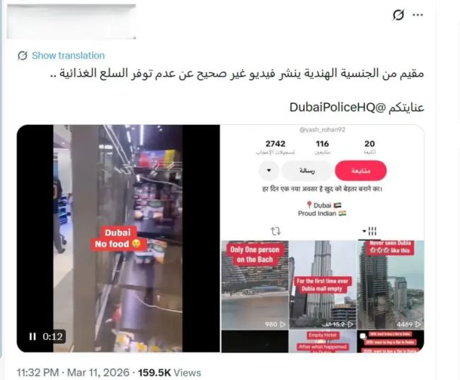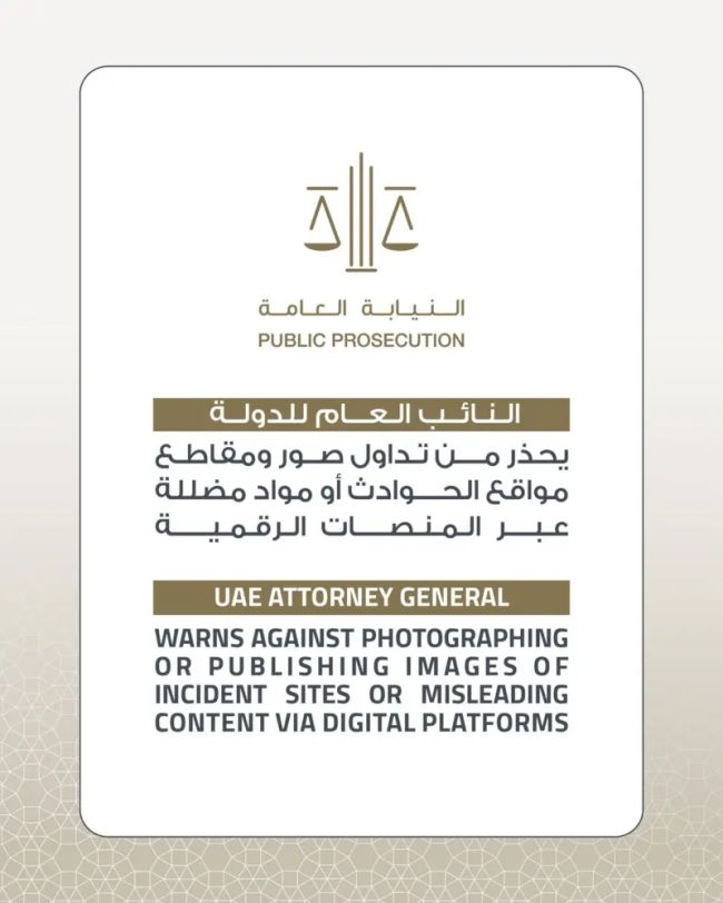 در امارات، دادستان کل درباره انتشار تصاویر یا ویدیوهایی که ممکن است موجب ایجاد هراس عمومی شود یا تصویری نادرست از اوضاع ارائه دهد، هشدار داده است.