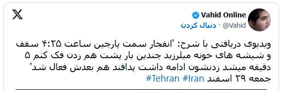 در همین حال حساب کاربری وحیدآنلاین نیز تصاویری از انفجارهای روز جمعه در منطقه پارچین را منتشر کرد.