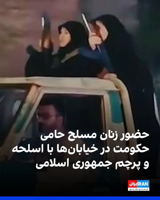 حضور زنان حامی جمهوری اسلامی با اسلحه در سطح خیابانهای ایران + ویدیو