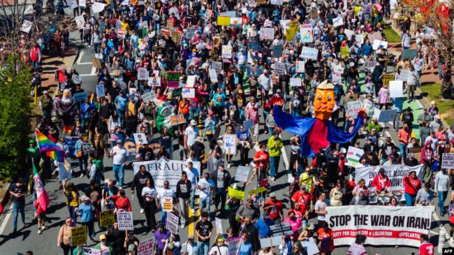 در کنار انتقاد از سیاستهای داخلی دولت ترامپ، از جمله نحوه اجرای قوانین مهاجرتی، استفاده از فرمانهای اجرایی و عملکرد نهادهای فدرال، موضوع جنگ اخیر علیه ایران نیز در بخشی از این تجمعها مطرح بوده است.