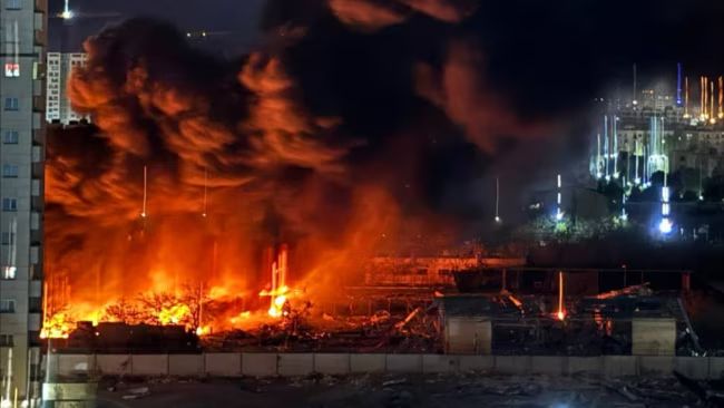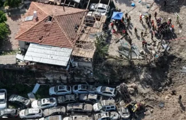 در محل اصابت، گودال بزرگی ایجاد شده و این حمله به ساختمانها و خودروها خسارت وارد کرده است؛ نیروهای امدادی هم در محل حضور دارند.