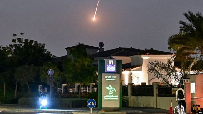 لحظه پرواز یک موشک شلیک‌شده ایران در آسمان دوبیرادیو فردا: با تداوم جنگ ایران، محدودیت‌های امارات متحده عربی برای ورود و تردد ایرانیان شدیدتر شده و صدها نفر ناچار به ترک این کشور شده‌اند.